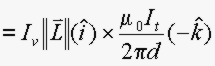 Sila na zgornji segment AB od magnetnega polja, ki ga ustvarja
